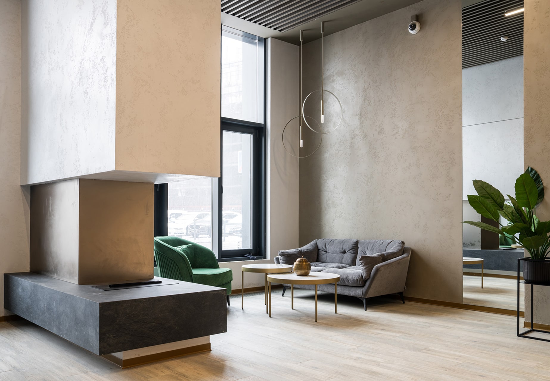 - В каждой входной группе — консьерж и зона отдыха с мягкой мебелью, колясочные, санузлы